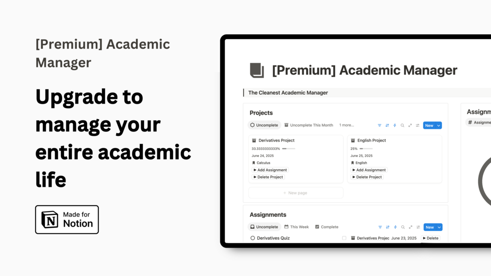 The [Premium] Academic Manager will help you with actually organizing and managing all your assignments, projects, notes, and more!
